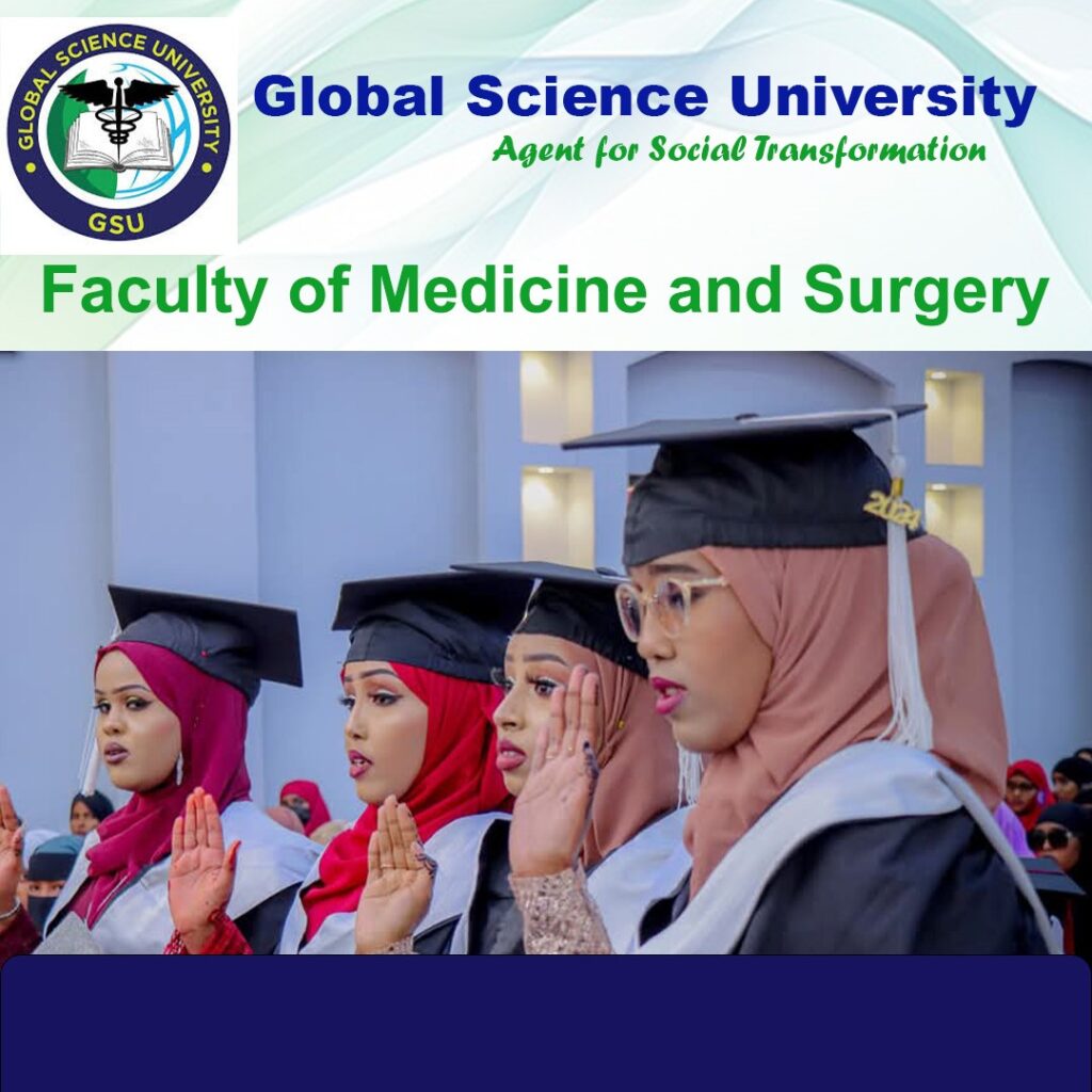 Global Science University (GSU) was established in 2014 as a higher education institution in Galkacyo, Puntland-Somalia. The university currently has four faculties; Faculty of Medicine (MBBS), Faculty of Health Sciences and Faculty of Information Technology (IT), two campuses, one teaching hospital (GMC), and School of Postgarudate studies. Our Strategic Plan (SP) for the next five (5) years spans long-term vision (2023-2028: Transforming GSU Academically Excellent and Research-driven University. With this regard, GSU intends to renovate into a research-driven university with the long-term vision to become one of the leading research-driven universities in Somalia and the prime choice university in Somalia by 2033. The university is devoted to providing excellent academic programs to its students with top-quality education and training at undergraduate and postgraduate level.